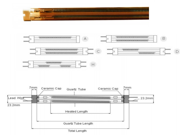 · Kısa Dalga IR Lambalarda; Cam tüp şeffaf, seramik kaplı ve altın kaplı olarak üretilebilmektedir. Kullanılan duya göre IR lambalar farklılıklar gösterebilmektedir.